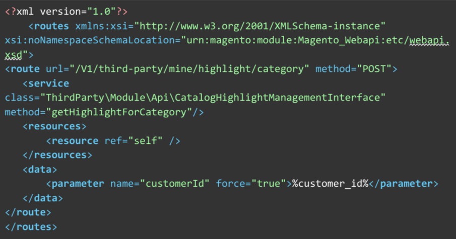 For example we have the so called webapi.xml file that defines the Customer service web API: