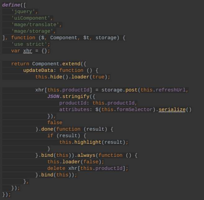 I skip unnecessary parameters that are not of interest, here it is important for us to see how we replace the storage.post on fetch method.