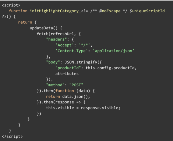 So we have an example /V1/third-party/mine/highlight/category of an endpoint (third-party modules can have their own endpoints that require customer authorization). And we will start converting a frontend part of third-party module, which executes a request to an endpoint ():